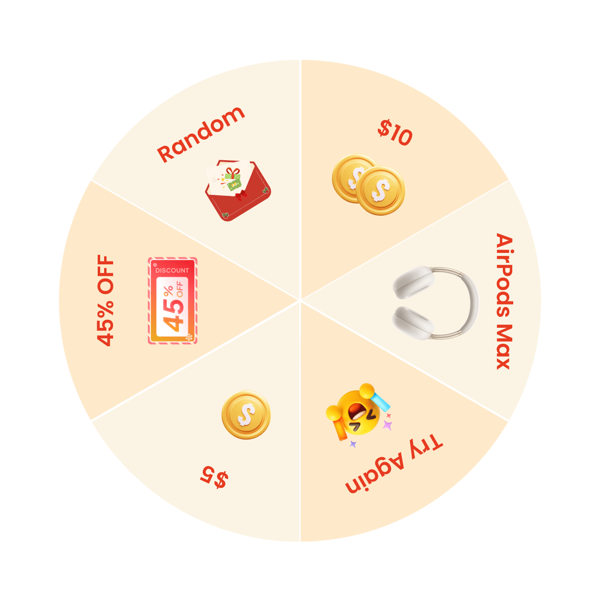 4. Each user has two (2) chances to spin the wheel per day during the campaign period.Prizes such as $5, $10, and 45% OFF cannot be stacked or combined within the same order, even if multiple products are included.
